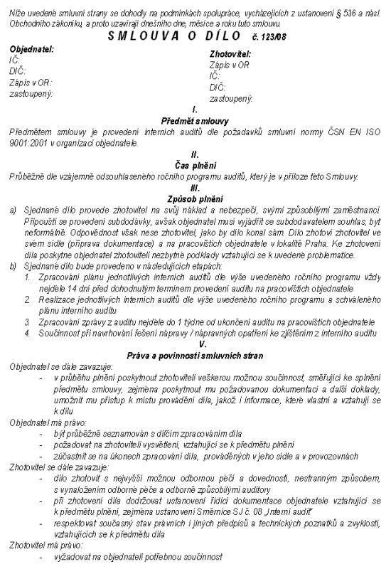 dále např. ustanovení smlouvy o dílo, jejímž předmětem bude provedení interního