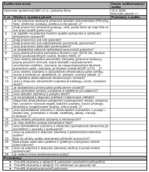 a nevýhody použití kontrolního listu pro interní audit a příklady