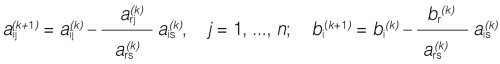 odečteme klíčový řádek podělený klíčovým prvkem a násobený prvkem nacházejícím