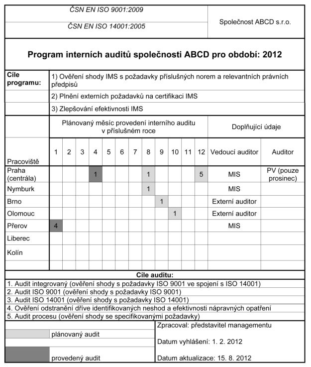 Roční program auditů na rok 2012 byl schválen vedením 30. 1. 2012 a je uveden v příloze této zprávy.