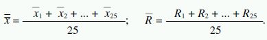 Nejprve je nutno vypočítat průměrné hodnoty procesu, tj. aritmetický průměr všech naměřených hodnot a průměrné rozpětí: