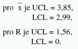 Obdobně se stanoví regulační meze pro rozpětí:
