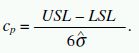 Index způsobilosti je poměr mezi délkou tolerančního intervalu a délkou konfidenčního intervalu T = USL – LSL pro jednotlivá měření, který lze vyjádřit pomocí násobků ˆσ; v současné době je požadována spolehlivost 99,73 %, což odpovídá délce intervalu 6 ˆσ. Je-li splněn předpoklad shody směrné a průměrné hodnoty procesu, pak lze posoudit způsobilost procesu jednoduše a přímo jako podíl zmíněných intervalů, tedy: