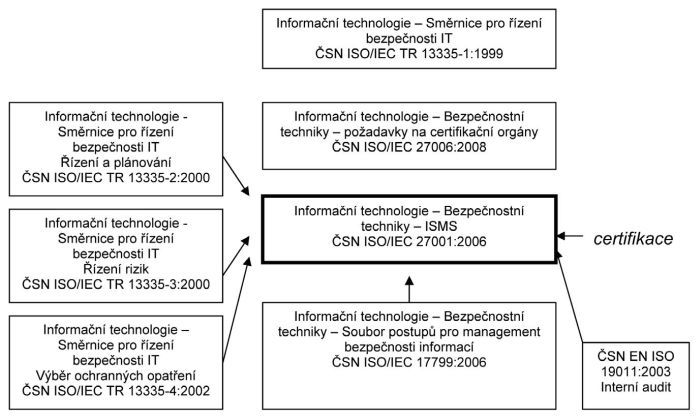 normy ČSN ISO/IEC 27001:2006 a dále norem ČSN ISO/IEC TR 13335 část 1 až 5.