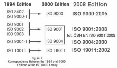 revizi mezitím vydané ISO 9000:2005 a zohlednit nahrazení norem řady ISO 10011