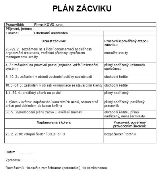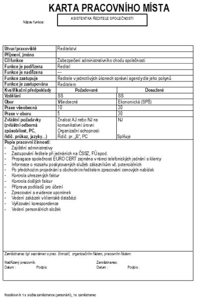 Vedení společnosti zajišťuje vhodné pracovní prostředí potřebné pro